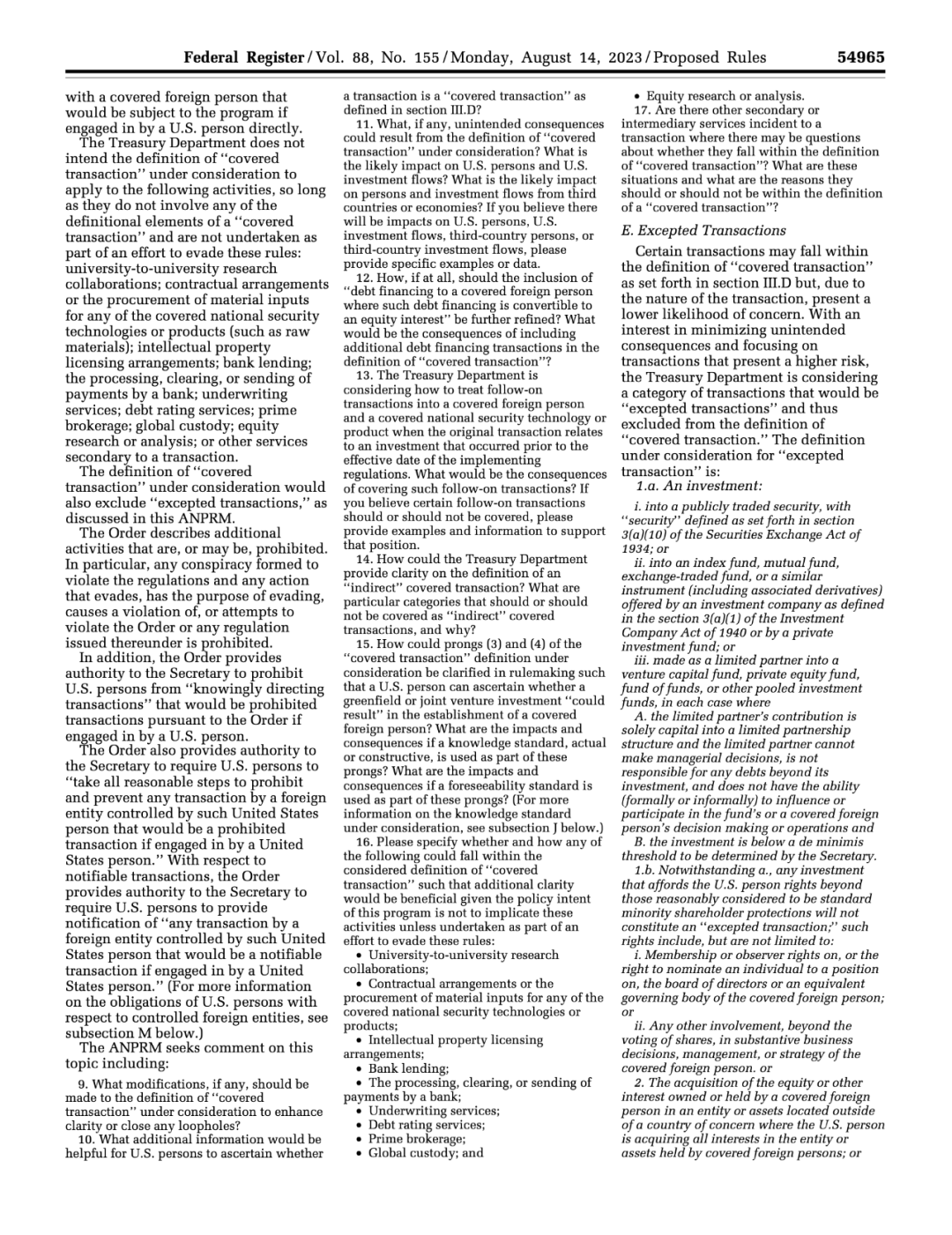 美国财政部在拜登总统去年 8 月签署行政令后的初步征求意见期后公布了拟议的规则以及一系列例外条款。这些规则要求美国个人或公司自行决定限制或禁止哪些交易。